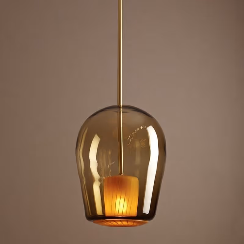 The Ovolo was selected by Lena Cottray due to its "sculptural form" that typifies the artistry of Articolo’s design philosophy. Its organic shape conceals a custom light source; a handcrafted disc encased in brass that floats with weightlessness behind a striking glass form, mouth-blown in Murano, Italy. Articolo’s signature brass suspension is superbly crafted with a bespoke lock and key detail; a refined finish appropriate for both residential and commercial interiors.