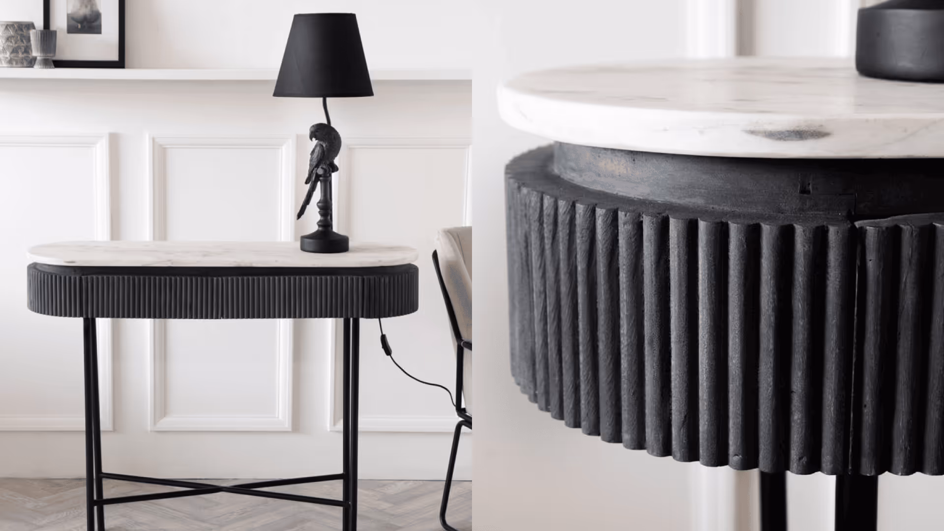 With elegant ribbed edging, the table is made with sustainable materials with a sophisticated colour scheme.