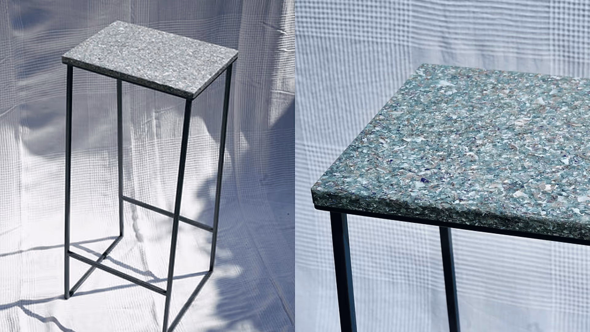 Sleek design, shimmer on the seat is lovely, top contains over 90 recycled CD’s