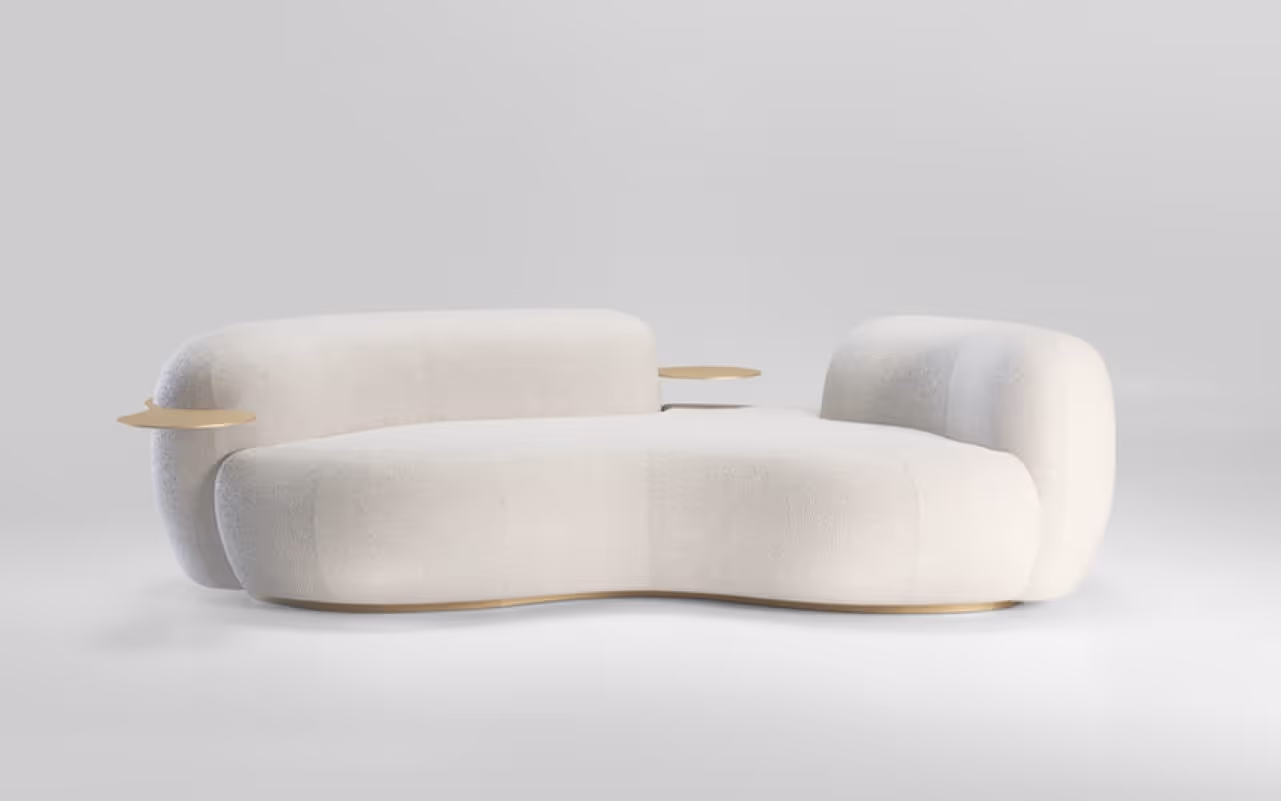 EMMANUELLE SIMON - SPLIT SOFA - View HereThe Split Sofa was selected by Lena for the beautiful curves with curved timber plinth detail.Size - W 134 x D 260 x H 82 CM
