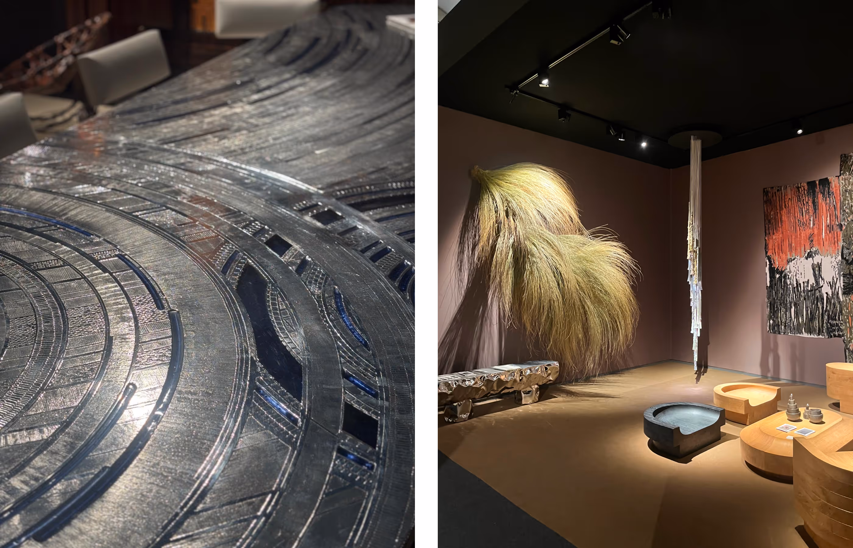 Its organic texture and natural tones offered a refreshing counterpoint to the sleek finishes elsewhere in the fair. The work seemed to blur the boundaries between art, nature, and interior design, drawing viewers in with its unexpected materiality and serene, tactile presence.