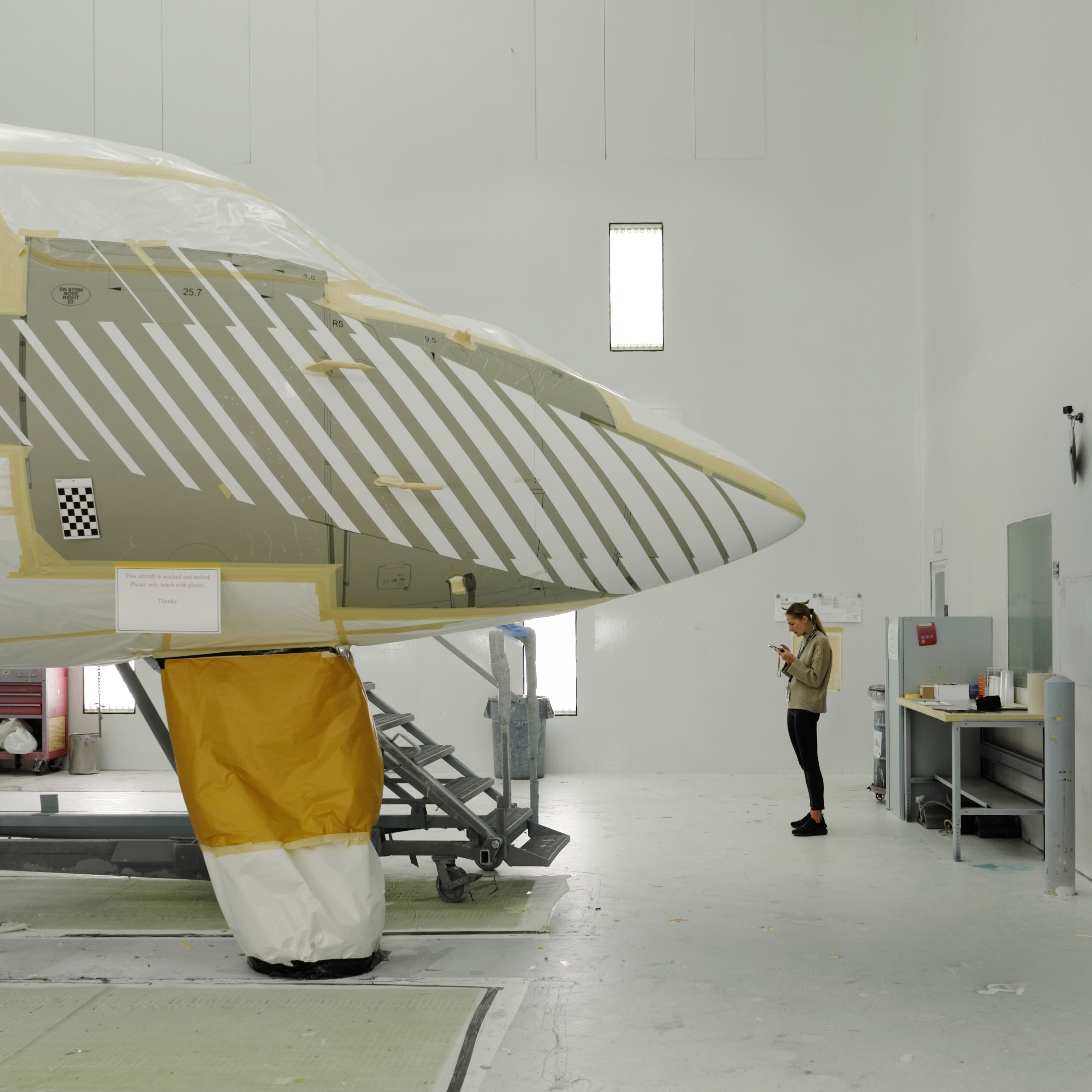 It was a long journey for just a few short hours on site, but our commitment to excellence means no distance is too great when it comes to ensuring perfection for our clients. Before the aircraft entered its initial paint stage, we meticulously inspected every aspect of the lay-up to ensure that each design element met our exacting standards. Every line, join, and surface was reviewed in detail - an essential step in transforming our digital designs into tangible reality.