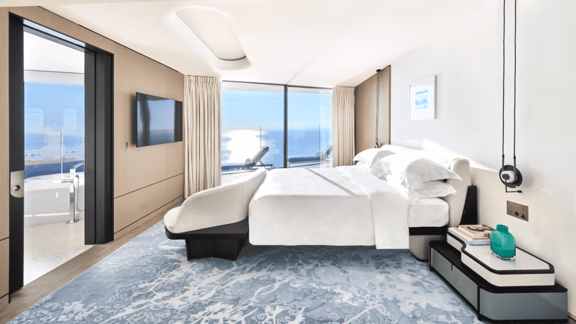 The article reads:Set the scene: Cantilevered across the cliffs of the glittering Côte d’Azur, with Monaco’s purring soundtrack on one side and the Bellini-coloured townhouses of Menton on the other, this 300m high villa is a lair of superlative seduction. Unlike the Maybourne group’s cosy London outposts, the stark modernist style of The Maybourne Riviera, all clean-lines and cut glass, creates a sleek temple to art and design.More on that design: The arresting exterior by veteran French architect Jean-Michel Wilmotte has ample floor-to-ceiling windows and Colgate-white colouring that allows the bright, elegant light of the French Riviera to filter into minimalist interiors. The spa is an André Fu design, and other world-leading studios – including Rigby and Rigby and Bryan O’Sullivan – have had a hand in finessing its stylised, pastel-kissed look. Guests with no limitations should book one of three panoramic suites that serve 360-degree views of the glittering coastline – all 67 other rooms promise private terraces and, for a few, plunge pools.