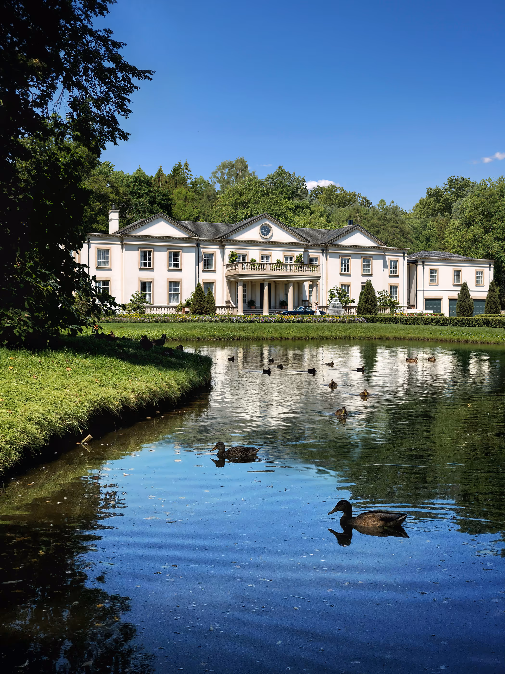 The three-level property will feature a gym, swimming pool and cinema, as well as a bespoke entertainment space including a dancefloor on the lower ground level. A modern family living space will be created on the ground and first floor levels to include six bedrooms, a wine cellar, tasting room and a self-contained, two-bedroom guest apartment over the three-car garage – which is connected to the house by a contemporary, glazed entrance hall that is designed to be as unobtrusive as possible.