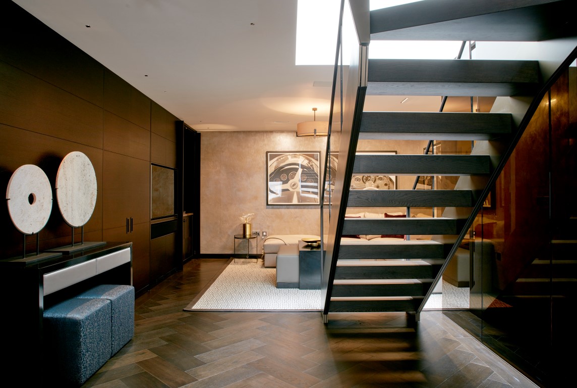 A mews house in prime central London was fully refurbished in accordance with the client’s modern living requirements, including a discreet, underground, glass-walled car-lift, as featured in the press.